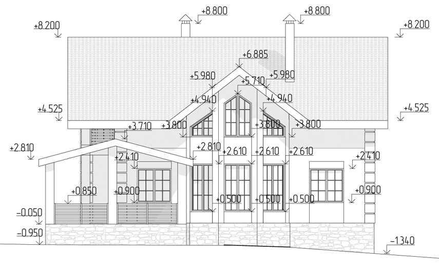 Внутренние стены — керамический полнотелый кирпич 380 мм