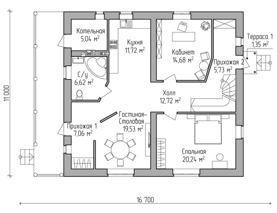 Облицовка — утеплитель 100 мм, декоративная штукатурка, искусственный камень