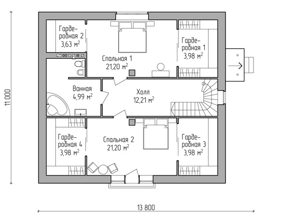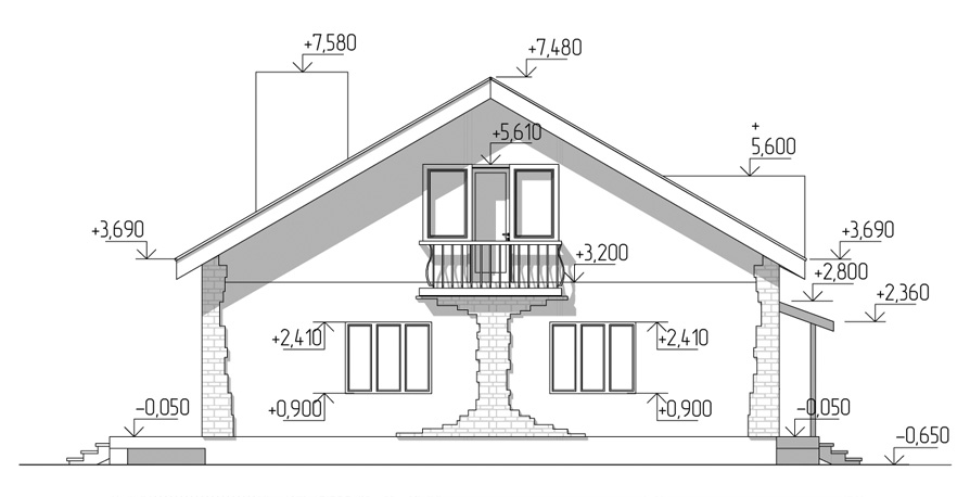 Проект коттеджа в нежных пастельных тонах с мансардным этажом. Наличие французкого балкона придает фасаду изящность и элегантность.