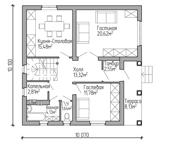 Проект индивидуального дома общей площадью 124,54 м2
