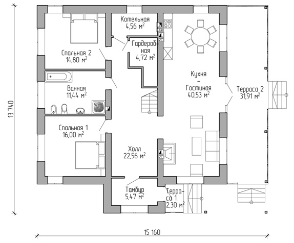 Проект индивидуального дома общей площадью 199,44 м2