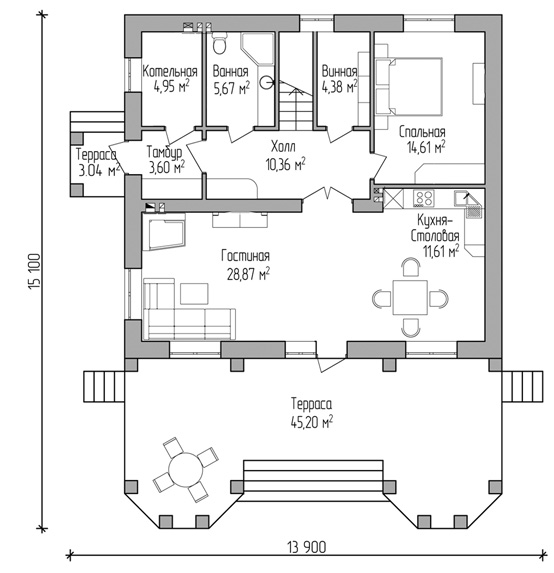 Облицовка — утеплитель 100 мм, декоративная штукатурка, искусственный камень