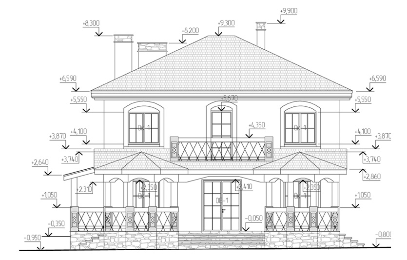 Очень красивый, представительный дом с ярко выраженным парадным входом и террасами в виде эркеров. Цветовая гамма спокойная и гармоничная.